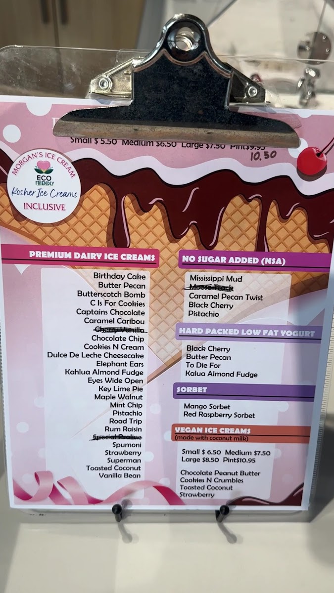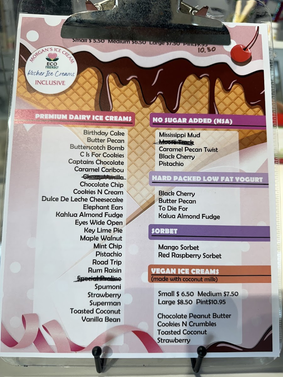 Morgan's Ice Cream in Hallandale Beach offers a delightful array of frozen treats catering to various tastes and dietary preferences. For vegan options, their Non-Dairy Frozen Desserts include flavors like Strawberry, Cookies N Crumbles, Toasted Coconut, and Peanut Butter Fudge. For those looking to indulge in a creamy drink, they offer a variety of Milk Shakes in both dairy and plant-based options, available in Medium (14 oz) and Large (18 oz) sizes. Their Boba Teas range from Oreo Black Milk Tea to fruitier options like Mango Milk Tea and Pineapple Ginger Boba Fruit Tea. The ice cream menu is equally tempting, featuring classic flavors like Cotton Candy, Vanilla Bean, and C Is For Cookies, as well as more indulgent choices such as Rum Raisin. Toppings like Crushed Oreos add an extra crunch to any scoop. For those mindful of their sugar intake, Morgan's also offers a selection of No Sugar Added & Low Fat Ice Creams, such as Caramel Pecan Twist, Raspberry Cheesecake, and Mississippi Mud with peanut butter cup chunks. With a diverse menu, there's something for everyone to enjoy at Morgan's Ice Cream.